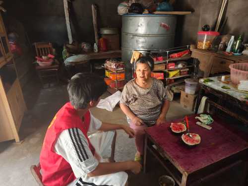 活动当天,滁州学院志愿服务小队统一穿着志愿服装,在村子里打扫卫生并且慰问当地村民。