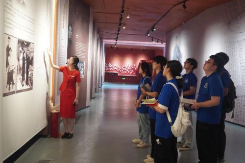 在中共洛阳组诞生地纪念馆,实践团通过沉浸式探寻,学习了1921年河南第一个党组织——中共洛阳组的成立历程。在讲解员的带领下,队员们深入了解了青年党员游天洋等人以《新青年》为火炬、在陇海铁路工人中播撒革命火种的故事。1921年,年仅20岁的游天洋领导了震惊中外的陇海铁路大罢工,并在此次斗争中成立了河南省第一个党组织——中共洛阳组。面对艰苦条件,游天洋甚至亲手剪纸制作党旗,带领白眉珊、王福顺庄严宣誓入党。让队员们深刻认识到“青年觉醒”的力量,深刻体会“星星之火可以燎原”的革命信念。