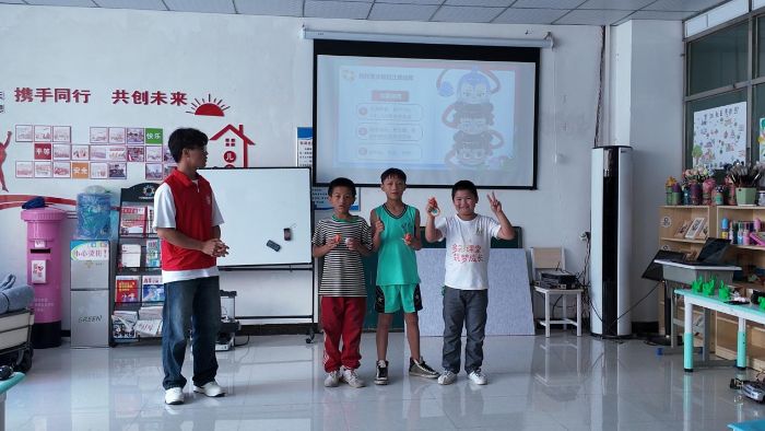 当动画电影《哪吒2》中脚踏风火轮的经典形象跃上宣讲屏幕,蒋家寨安置点的孩子们瞬间睁大了眼睛“哪吒那么厉害,遇到不认识的小河大海,也要躲开走!安全第一呀!”。7月27日,贵州理工学院"3D未来筑梦实践团"的队员们以创意动画课件破冰,将防溺水知识化作孩子们熟悉的英雄故事,给孩子们带来了一节防溺水特色课。经过一系列的理论及实践教育,孩子们对防溺水有了更深刻的理解,防溺水知识进一步深入孩子们的心中,安全责任意识在校园内绽放出别样光芒。