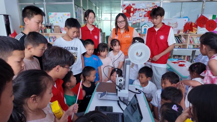 这支名为"3D未来筑梦实践团"的队伍,以科技为炬、文化为壤、安全为盾、游戏为桥,在乡村振兴的经纬线上绣出青春足迹。离村时,村支书紧握队长的手:"你们留下的不是七天的热闹,是能让娃娃们走得更远的灯!"大巴驶过蜿蜒山道,车窗回望处——那些彩绘太阳的笑脸、石膏娃娃的酒窝、随风舞动的小红旗,正连成一片发光的原野,温柔地漫向未来。