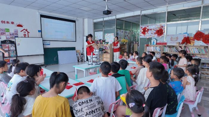 图为“3D未来筑梦实践团”成员关于防溺水的宣讲