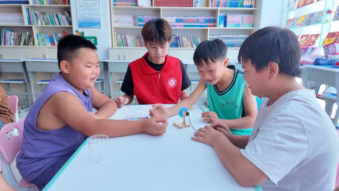 科普游戏点燃探索热情。旧电风扇拆解实验中,孩子们通过磁力线圈观测抽象的电能转化定律化作触手可及的齿轮交响,此次科学小实验既是对乡村资源短缺的智慧回应,更传递了‘真理蕴藏于生活褶皱’的认知哲学。