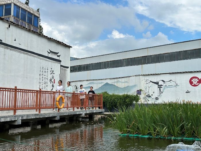 7月31日上午,团队成员抵达王允村委后,首先邀请村委主任为大家介绍王允村委近年来的发展变化。据村委主任介绍,王允村在乡村建设方面成果显著。以楼庄村为例,村里打造了独具特色的乡村壁画。楼庄村庄的壁画以“治水兴水护水”为主题,通过“河长制”“小微水体治理”等场景,展现村民参与河道清淤、污水管网建设的历程。这些壁画融合传统国画意境与现代墙绘技术,以“一墙一风景”的形式展现,这不仅美化了村庄环境,还成为传播乡村文化的重要载体,吸引了不少游客前来打卡,带动了乡村旅游业的发展。