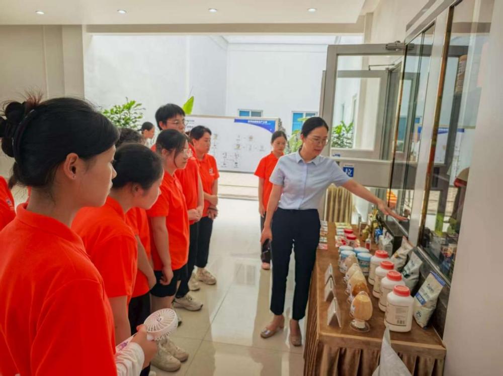 在产品展示区,吴丽萍主管化身“讲解员”,为实践团揭开酵母产品的“神秘面纱”。陈列架上,高活性干酵母、特种工业酵母、酵母提取物等产品有序摆放,涵盖家庭厨房到工业生产全场景。她结合生活实例,讲解不同酵母产品的特性与应用:家用干酵母助力面食发酵蓬松,工业特种酵母赋能酿造、生物制药高效生产,酵母衍生物在营养健康领域开发新可能。生动阐释中,成员们对“小酵母撬动大产业”有了深刻理解,惊叹于生物科技的多元应用价值。