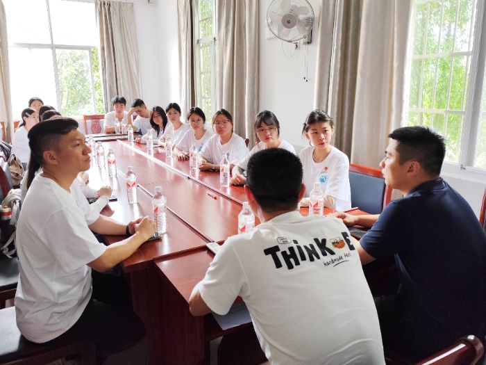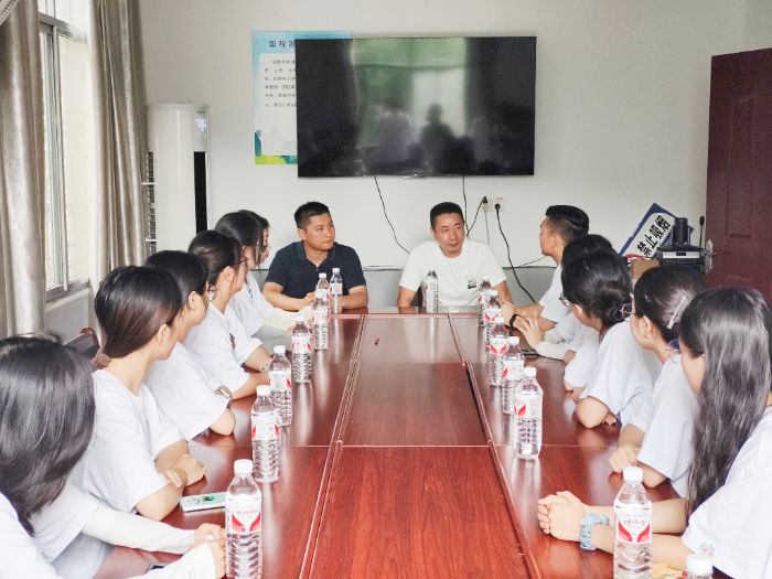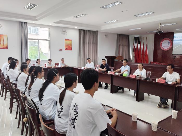在茶平乡政府会议室内,乡长陈贤清、茶平乡综合执法大队大队长郭家力为实践队师生带来一堂生动的乡村振兴主题党课以及职业生涯规划课。通过详实的数据和鲜活的事例,陈乡长系统介绍了茶平乡在产业发展、民生改善等方面的显著成效,特别是党建引领下乡村面貌的巨大变化。郭队长回溯成长经历,将个人职业成长的纵向脉络与行业发展的横向动态交织铺展,层层拆解就业资源分布不均、职业发展路径受限等核心命题,为在场同学拨开就业迷雾,指明前行方向。