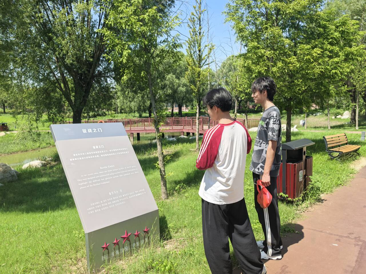 随后,队员们认真阅读淮海战役“征战之门”的文字展报,简洁有力的中文解说配合精准的英文翻译,生动诠释了“征战之门”的深刻内涵——钢铁般的意志与突破重围的壮烈。这段双语介绍以文字的力量在参观者心中构筑起一道精神之门,为后续实地感受埋下了深刻的思想伏笔。