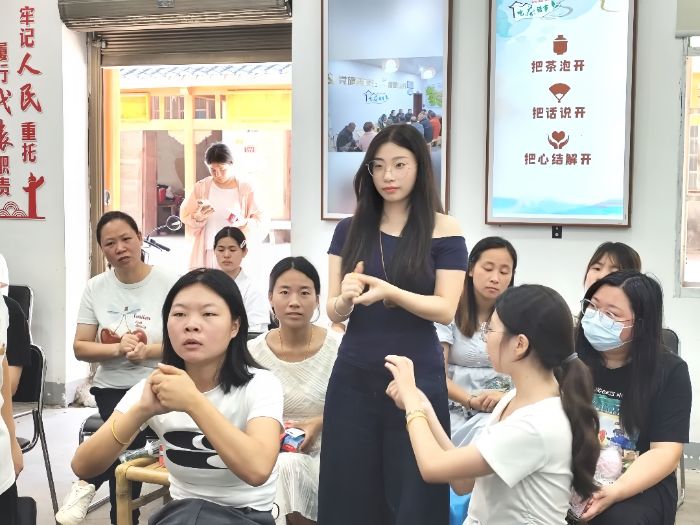 在实践教学环节,刘明鑫老师将七步洗手法拆解为“内、外、夹、弓、大、立、腕”进行标准演示,并组织村民现场实操,针对动作偏差逐一指导纠正,以细致严谨的教学方式,推动科学饮食与卫生习惯扎根乡村生活。