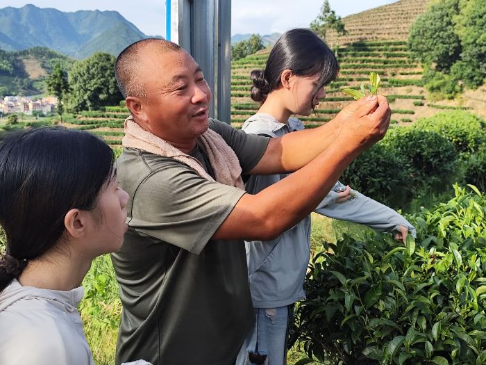 晨曦中的松溪茶山,医学院实践队在何师傅指导下研习采茶技艺。“一芽两叶,指腹轻折”。队员分组实操,从手法生涩到渐入佳境,竹篓渐满,茶香萦绕。这场实践,既是传统技艺的传承,也让青年学子在指尖触碰中,感悟松溪茶文化的深厚底蕴。