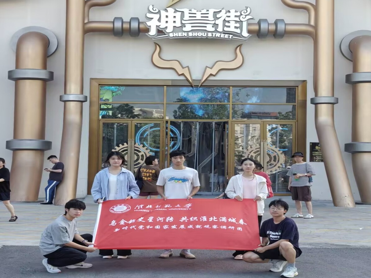 7月22日,安徽淮北夏阳灼灼,淮北师范大学计科院“乌金镌史星河转,共织淮北满城春——新时代党和国家发展成就观察调研团”的青年学子们,走进一座以古老神兽“夔牛”为灵感源泉的现代文旅地标——夔牛天街,以脚步丈量淮北从“乌金之城”向“文旅新城”的华丽蜕变轨迹,切身感受新时代资源型城市转型发展的澎湃脉动。