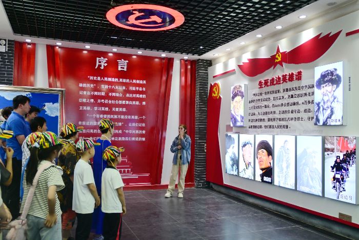 实践团专程走进提孜那甫守边护边爱国教育馆,沉浸式感悟“时代楷模”拉齐尼·巴依卡一家三代跨越半个多世纪的忠诚守护。斑驳的巡边装备、泛黄的家书照片、深情的讲解追忆,生动再现了拉齐尼祖孙如何在“死亡之谷”吾甫浪沟用生命践行“随时准备为祖国和人民牺牲一切”的铮铮誓言。帕米尔雄鹰虽已远去,但他用生命划出的忠诚轨迹,永远是我们青年奋进的灯塔。