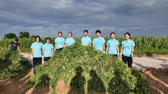 7月23日,在小岗村“大包干”发源地旧址旁的责任田里,实践团成员戴着手套,跟着前辈们学起了除杂草。七月的麦田里,杂草混生其间,稍不留神就会错割。毒辣的太阳炙烤着大地,汗水顺着成员们的脸颊滑落,浸透了衣衫,切身感受到“一粥一饭,当思来处不易”的分量。