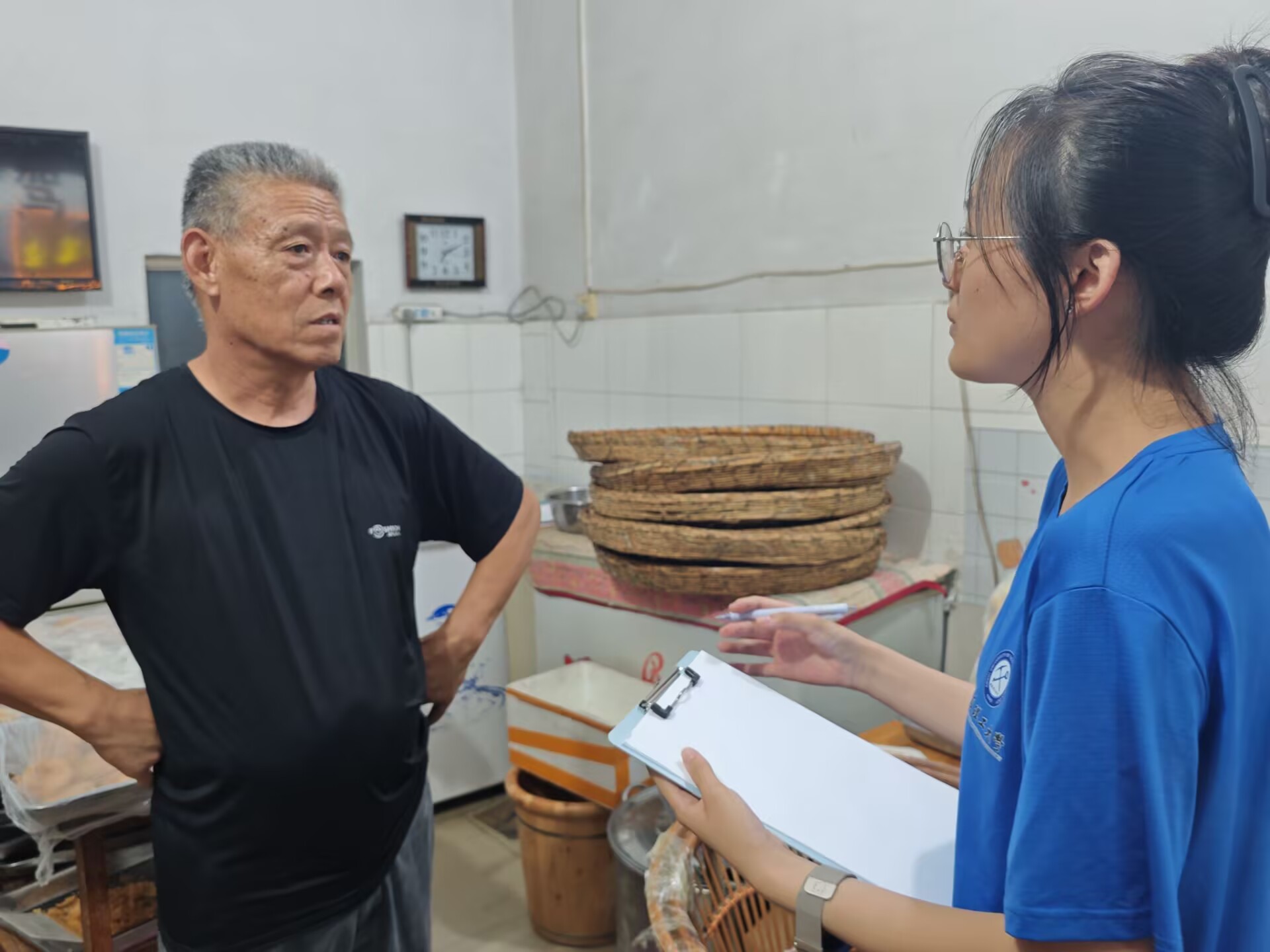 调研活动接近尾声时,志愿者们收到了意外的惊喜。得知大学生们为宣传“大救驾”文化专程而来,店主叔叔热情地将新鲜出炉的 大救驾 赠予团队。他表示,大学生们的三下乡活动助力更多的年轻人了解传统糕点,这对文化传承大有裨益。他希望非遗文化代代相传,赓续不息。
