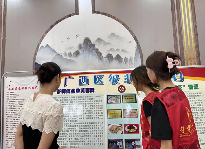 (通讯员:夏莹)7月7日,“南理微光禾下乡音”社会实践团走进柳州市融安县骑楼街,开展“三下乡”实践活动,以“探产业、聚人才、兴文化”为主线,挖掘地方文化内涵。实践团队聚焦融安非遗美食“芙蓉酥”与“烧遮”,走访探寻背后故事,感受古建筑与人文传承交融之美。在长安芙蓉酥传承人的制作工坊里,实践团听传承人讲述这道自治区非遗美食从民国年间传承至今的故事,队员们惊叹:原来一块小小的芙蓉酥,藏着这么多代人的手艺坚守,咬下去的酥脆,是对非遗美食的肯定。实践团队表示此次活动收获颇丰,将会努力推广特色民俗文化,探寻融安饮食里的“乡愁印记”,为乡村文化振兴注入青春动能。