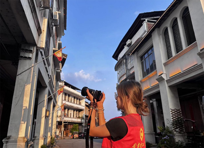 图为实践队队员在拍摄骑楼街,助力非遗美食文化调研纪录。吴敏松 供图