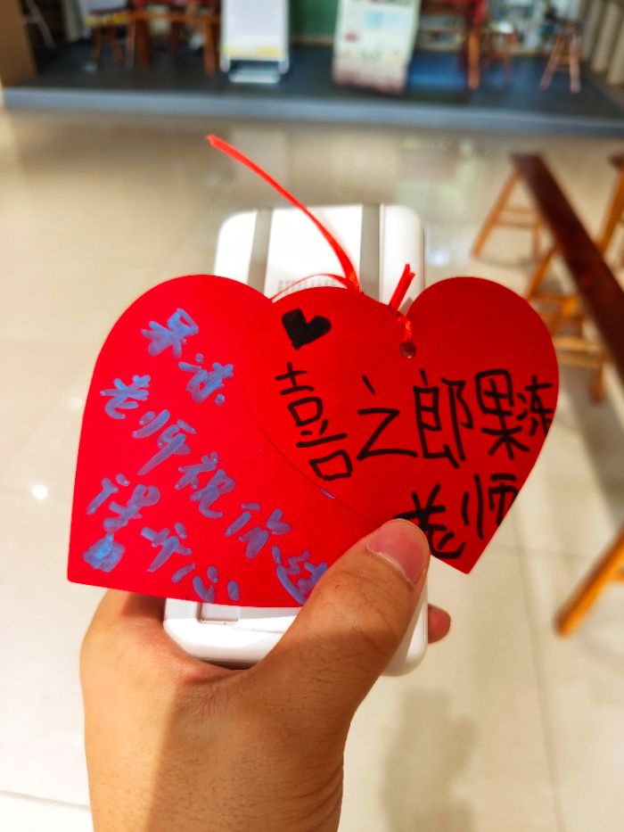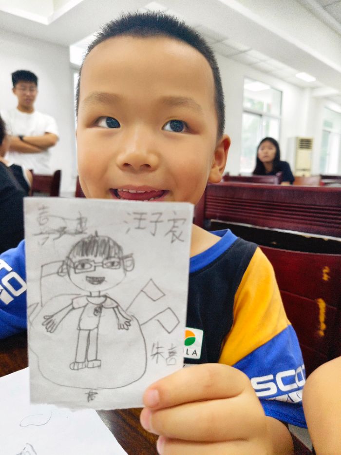 现在还依然记得“四小只”的故事呢。第一天自我介绍时,我告诉孩子们可以叫我“喜子老师”,后面下去辅导功课时,他们四小只坐在一起,我辅导完他们的作业后,突然想问问他们记不记得我叫什么老师,其他三个人都回答对了(当时听到的时候既惊讶又高兴,毕竟我只介绍了一遍就能记住,更何况还有其他那么多老师呢),唯独二宝,他可能因为口音的原因,把我叫成了“喜之郎老师”。他这话一出,另外三小只也都在那里边笑边重复念叨着“喜之郎老师”——从此,“喜之郎老师”“喜之郎果冻老师”等称号在孩子们之间广泛流传。现在想来一切都正正好,在正式开课前,我们还去镇上的商场采买一些生活物品时,我就曾看中了一款超大型果冻(虽然最后还是没买)。“喜之郎老师”,嗯,感觉挺不错的,念起来也朗朗上口呢。