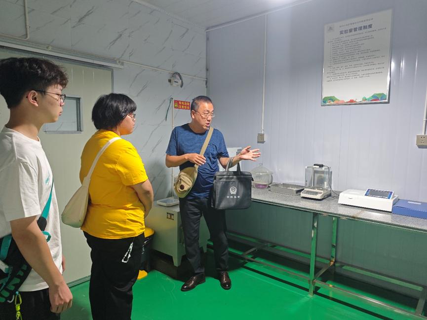 7月29日,学生们还分赴药企、农产品检测中心等单位开展跟岗实习。在药企,他们认真学习药品储存和管理规范;在检测中心,协助工作人员对瓜果蔬菜进行农残检测。“我们先到企业办公部门看见大家都在自己的工位上认真工作,紧接着唐总将我们带到物流部门,带我们去看了药品存放的库房,有阴凉库,常温库,中药材库,冷藏库和特殊药品库房,每个库房都有自己的湿度和温度要求。药品储存仓库里每一排整齐的货架、严格控制的温湿度,都让人感受到“规范”二字的分量——这不仅是对药品的保护,更是对用药安全的郑重承诺。唐总还告诉我们每次药品到都会经历收货,验收,抽样检查,入库,而且每次药品都需要留样,以便以后检查。从分区存放的精细到出入库记录的严谨,能直观体会到药品从储存到流通的每一环都容不得半点马虎,背后是对生命健康的敬畏。”学生说。