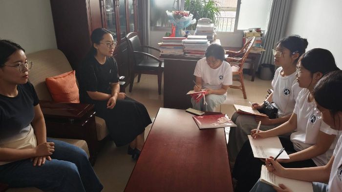 图2团队成员与蒙阴县政府工作人员交谈 通讯员贾思雨摄
