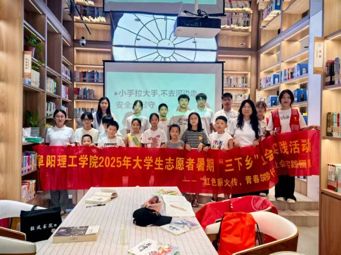 7月22日,阜阳理工学院“红色薪火传,青春筑梦行”实践团队9名师生,在安徽省宣城市广德市桃州镇双河社区团委协同下,走进当地光藻书房,为暑期自习班29名少年儿童开展防溺水科普活动,守护孩子暑期安全。