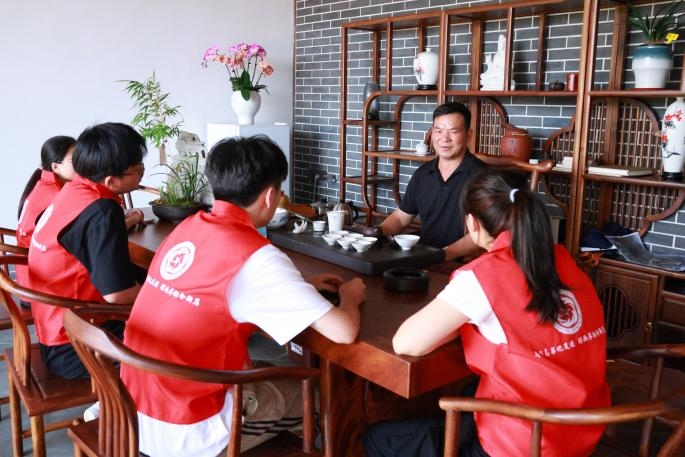 在现代化气息浓厚的鸿鼎农场,实践队与2023年“福建省劳动模范”、漳平台商联谊会会长李志鸿先生进行了富有启发的座谈。李志鸿先生深情回顾了二十余载扎根大陆、专注高山乌龙茶种植与加工的创业历程,言语间浸透着坚守的执着与深沉的热爱。在他的带领下,鸿鼎农场已发展成为海峡两岸规模领先、技术先进的现代化高山乌龙茶生产基地,其匠心打造的茶叶品质卓然,深受市场推崇。队员们从他的讲述中,不仅深刻感受到一代代台商在大陆创业兴业的热忱与韧性,更直观洞见了两岸农业产业在技术、管理、市场等层面深度融合所释放的巨大潜能与结出的丰硕成果。