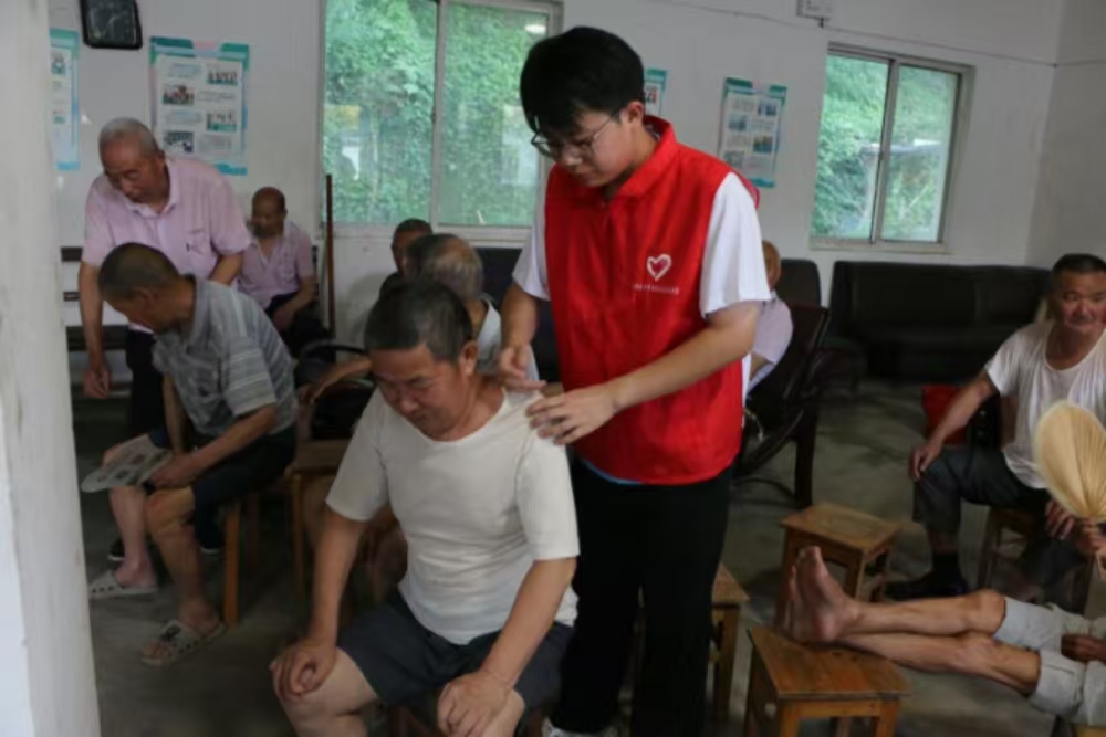 为践行尊老敬老美德,弘扬中医药文化,实践团走进誓节镇养老院。成员们与老人及负责人深入交流,了解老人生活与健康需求,并展示中医养生知识和传统养生功法,细致讲解穴位养生要点和推拿手法,让老人们感受中医理疗魅力,以实际行动为乡村民生服务贡献力量,提升乡村老人的生活幸福感。