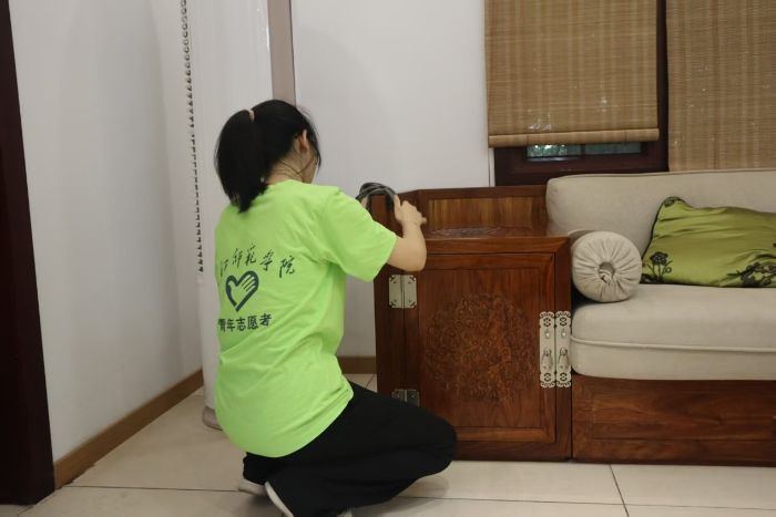 (通讯员:欧海云)为培养学生劳动意识,提升团队协作能力,7月7日上午,长江师范学院外国语学院“钩深索隐”实践团走进巴山夜雨,集中开展环境清洁志愿活动。活动中,团队成员分工明确、配合默契。队员们分组进行地面清扫、桌椅擦拭和地板清洁等工作。扫帚所过之处纸屑灰尘尽除;桌椅被细致擦拭,光亮如新;地面经过反复拖洗,整洁干净。尽管天气炎热,汗水浸湿衣衫,队员们依然热情不减,态度认真负责。