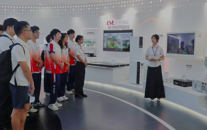 图为实践队队员参观亿纬锂能。 沈俊廷摄