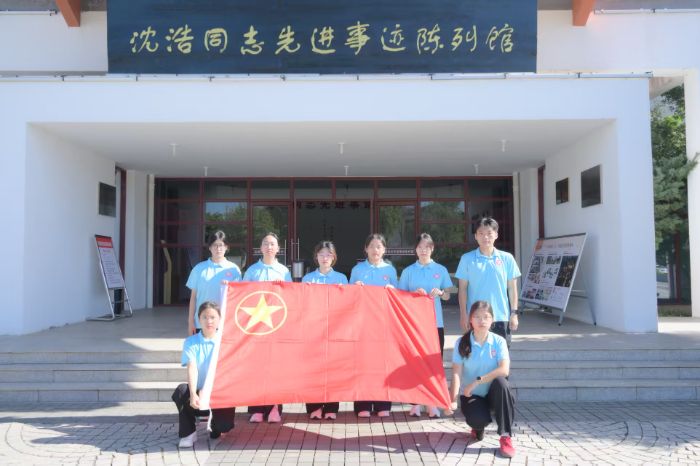 图为实践团成员在沈浩同志纪念馆前合影赵旭东/摄