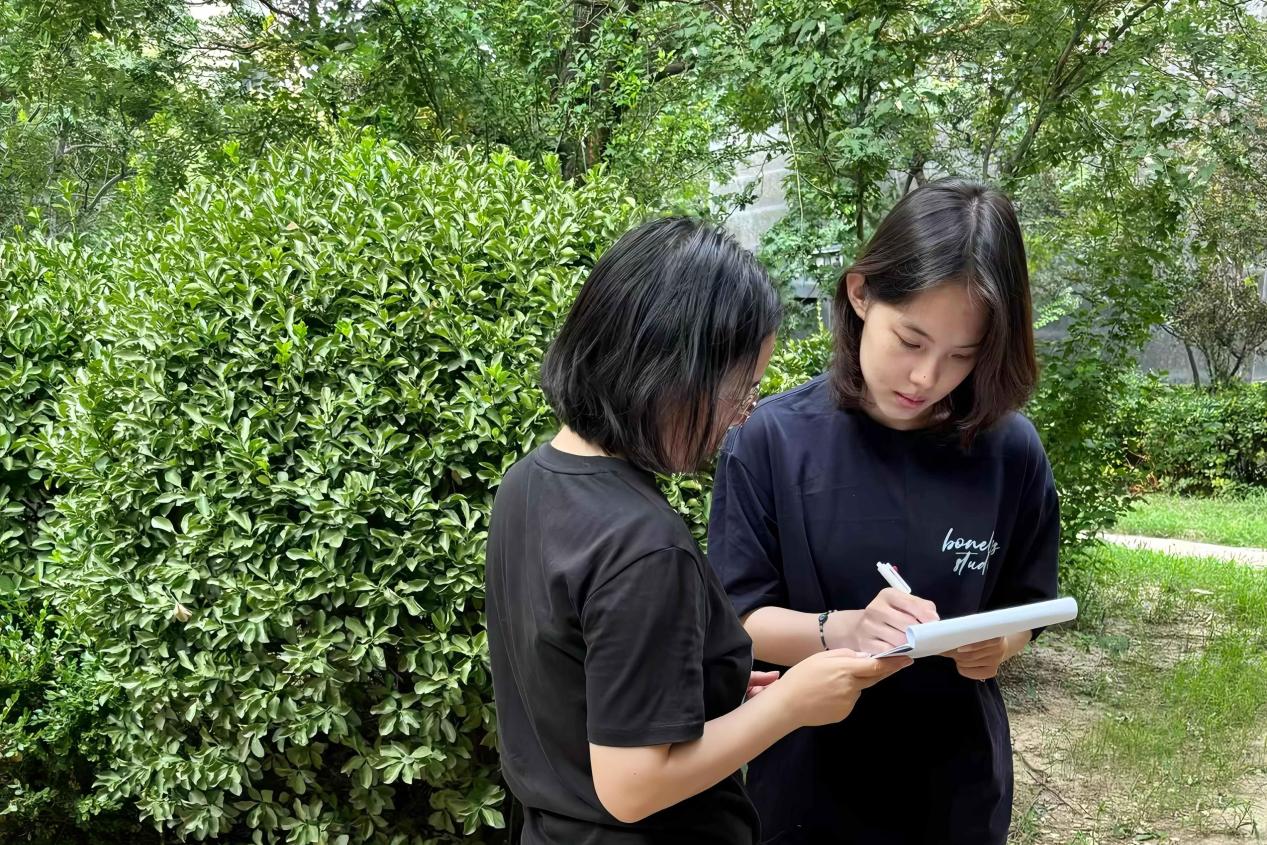 图为团队成员采访基地工作人员赵女士郑翔予供图