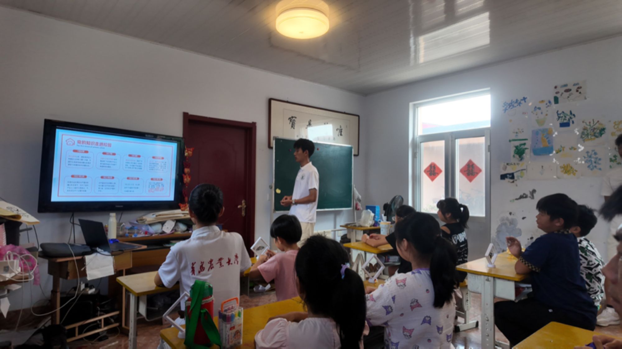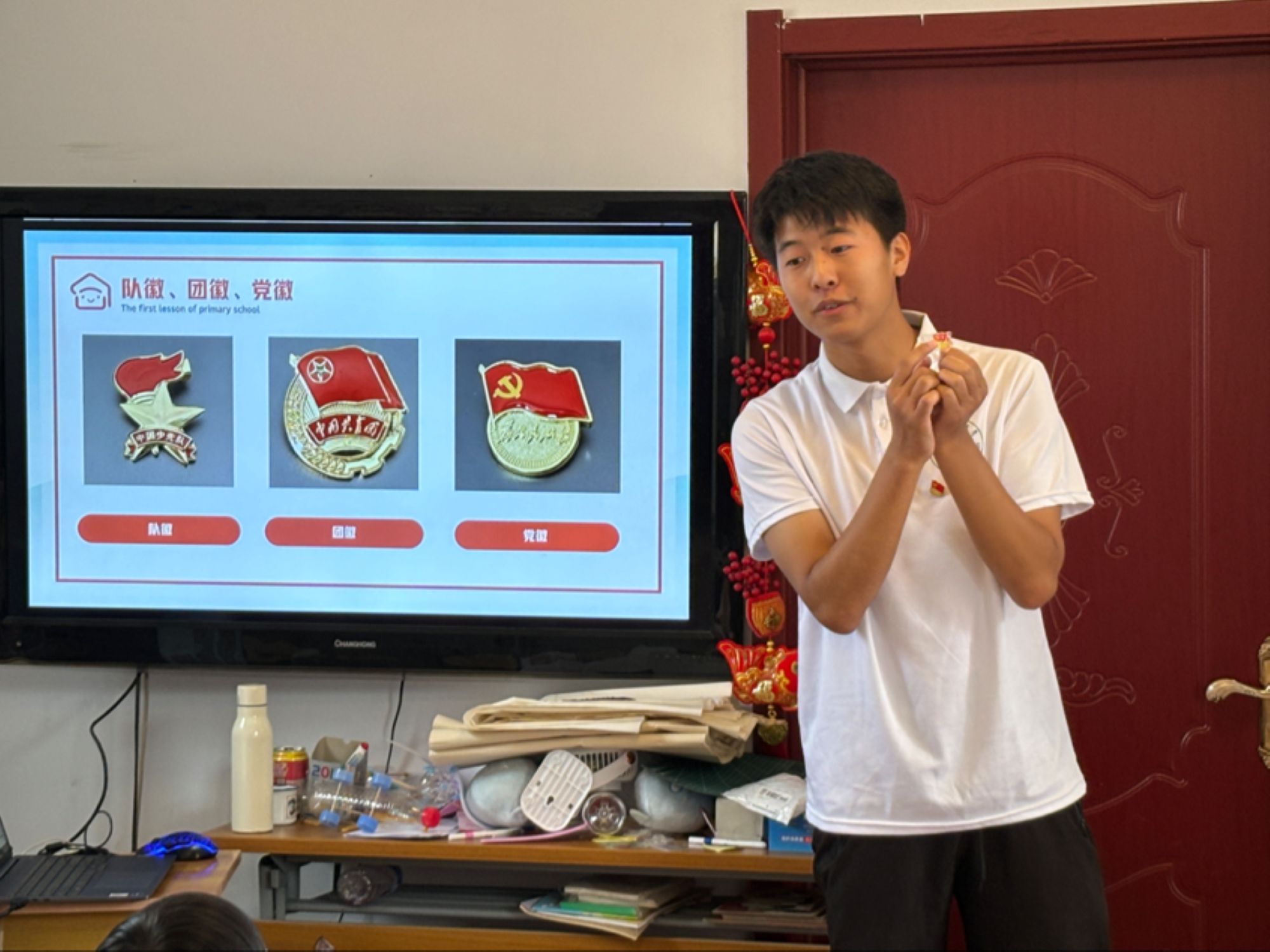 为深入学习贯彻习近平新时代中国特色社会主义思想,加强青少年爱国主义教育,青岛农业大学国旗护卫队暑期实践团于8月10日面向高密英华学堂的学生们开展以“颂党爱国争做新时代好少年”为主题的思政第一课活动。本次活动通过丰富多彩的教育形式,引导广大青少年扣好人生第一粒扣子,厚植爱党爱国情怀。