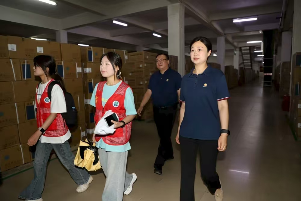 张言、李恬舒向“三下乡”社会实践活动小组的师生们介绍了华源医药集团的发展情况及社会贡献,陪同考察了华源现代物流园、仓库、保健品展销大厅等处。