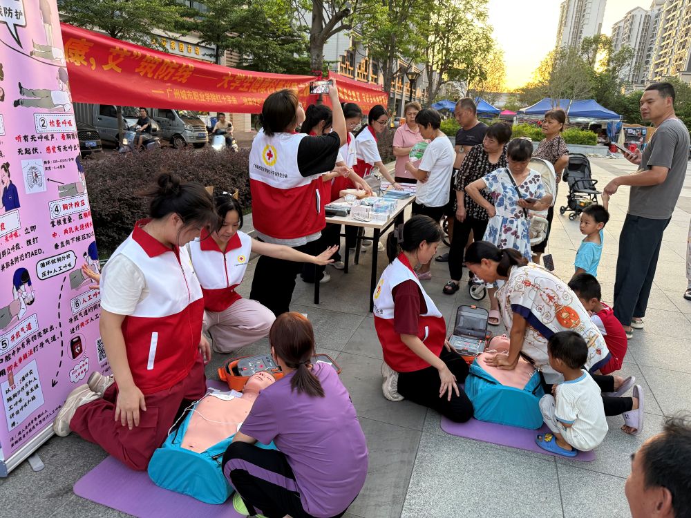急救培训进万家,生命守护在身边” ——突击队全力推动应急救护全民普及 突击队深入践行习近平总书记“人民健康是社会文明进步的基础”的重要论述,秉持“以人民为中心”的发展思想,积极响应广州市红十字会关于深化应急救护培训“进社区、进农村、进学校、进机关、进企业、进家庭”的工作部署,创新开展急救培训工作。盛夏的烈日炙烤着乡间小路,突击队员们扛着沉甸甸的心肺复苏模拟人在南池村挨家挨户敲门走访。汗水浸透了红马甲,但突击队员们的脚步丝毫不停——“多教会一个人,就可能多救一条命。”