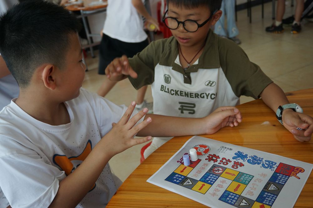 “寓教于乐+沉浸体验”——突击队创新构建防溺水教育新范式 “小心!这里水深危险,后退三步!”孩子们围着防溺水飞行棋,掷骰子、走格子,每停一步都要回答安全知识问题。突击队员们把枯燥的“六不准”变成了趣味游戏,欢笑声中,安全知识悄悄扎根。