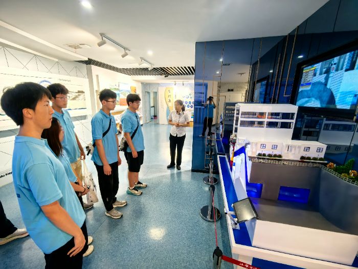 当日下午,实践团来到江苏省设计院。在工作人员引导下,成员们了解了设计院的基本结构与职能,参观了陈列馆,通过展品感受水利事业发展。设计院的专家们还通过短片为实践团介绍了江苏省在水利规划、设计方面的工作成果,以及在国家水网建设中的实践经验。实践团成员们积极提问,与专家们就水利工程建设中的实际问题进行了深入交流。