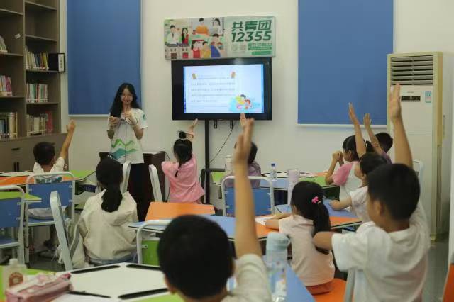 图为乐知班的学生积极举手回答队员陈妙丹提出的问题