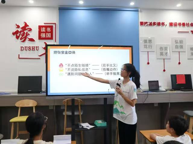 图为队员刘韵诗讲解网络安全知识