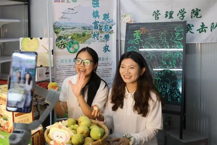 “互联网+”架起城乡对接金桥 作为本次实践的核心工作,“直播+短视频+IP定制”的助农宣传模式也让龙仙镇特色产品走出了大山。在本次下乡期间,突击队在龙仙助农馆开展了为期三天的视频号助农直播。