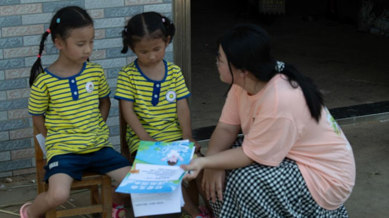 图为实践队员杨柳为儿童进行防溺水安全教育。蔡旭泰供图