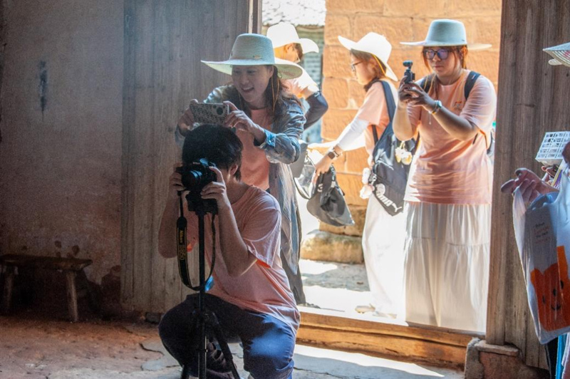 图为实践队进入村民家中拍摄全家福。蔡旭泰供图