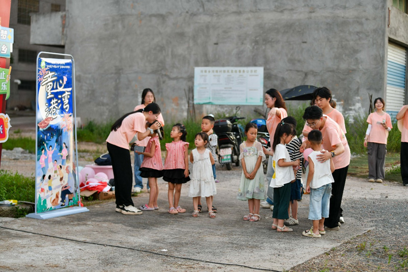 图为实践队员和孩子们同台游戏。蔡旭泰供图