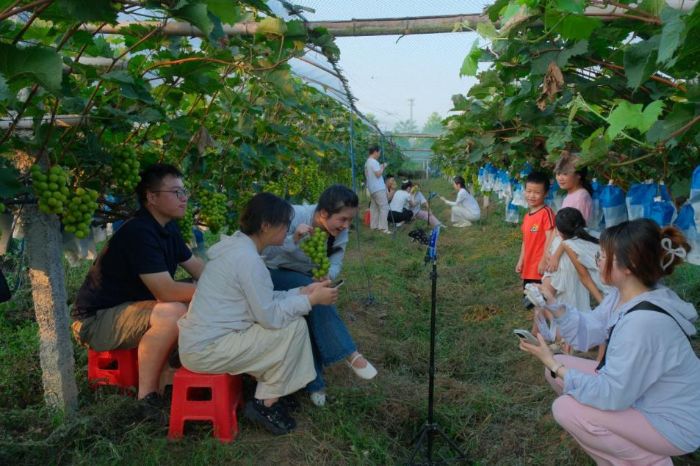 直播助农销葡萄航空速运提效率实践团成员与选调生村支书助理共同参与“阳光玫瑰”葡萄助农直播,亲身体验新媒体助农销售的全流程,深入考察其在乡村振兴中的实际成效。随后,团队前往桥头河机场调研航空物流在农产品运输中的应用,与机场工作人员交流货运航线布局、运输成本及生鲜产品保障措施等关键问题。基于直播实践与实地调研,成员们重点探讨了如何发挥机场区位优势,发展高附加值农产品的航空冷链运输,并研究整合电商直播与航空物流资源、优化信息对接平台的具体路径,以提升农产品从产地到消费终端的流通效率。