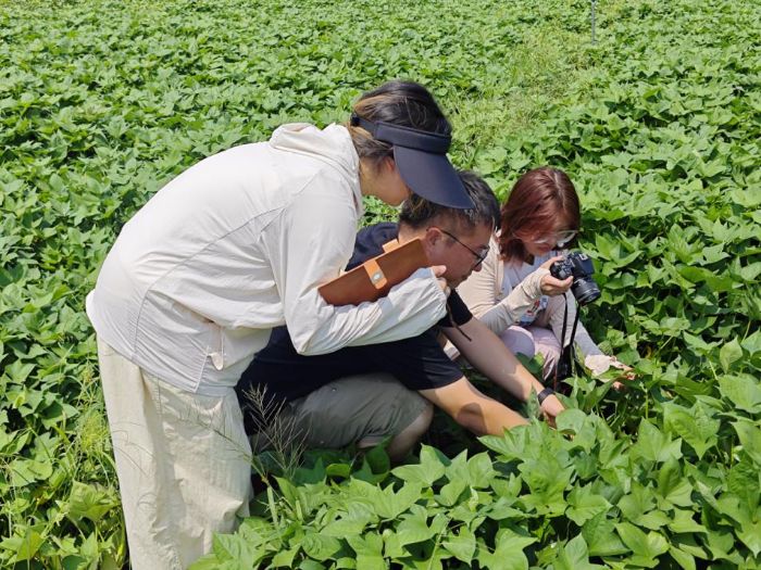 图为实践团成员在桥头河蔬菜基地拍摄病虫害数据集。曾梦媛摄