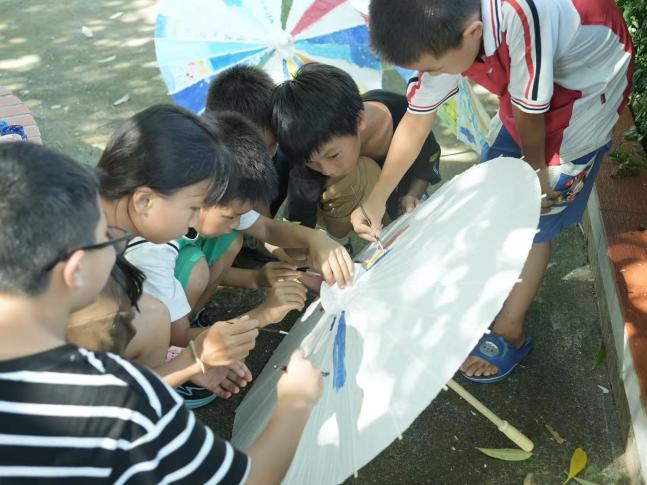 图为孩子们在美术课上绘制油纸伞 梁蓝丹摄