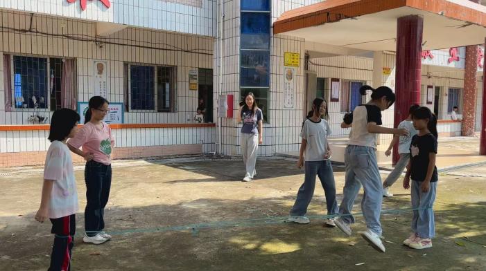 在整个支教过程中,实践团成员始终牢记自身使命,以高度的责任感与耐心对待每一位学生。他们不仅关注孩子们的学习情况,更注重与孩子们的情感交流,倾听他们的心声,和他们一起玩耍、运动。一到课间,校园里随处可见成员们和孩子们玩闹的身影,处处洋溢着欢声笑语。一名小男孩在下课时拉着实践团的成员的手说,“之前来这里上学没那么开心,但是你们来了,上学就开心多了。”