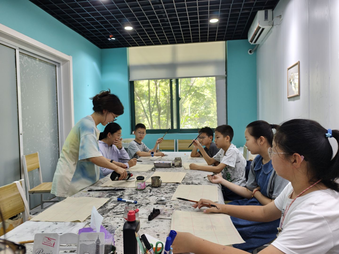 墨香浸润初心 笔尖传承红色基因“一撇一捺写‘党’字,一横一竖悟初心。”书法课堂上,实践团成员郭舒贤、佘昱璇手把手教小学生们书写“坚持真理”“践行初心”等建党精神关键词。宣纸上,孩子们稚嫩却工整的字迹与团队提前创作的红色主题书法作品相映成趣,构成一幅独特的“红色笔墨图”。“书法不仅是艺术,更是传承精神的载体。”郭舒贤说,希望通过笔尖的力量,让孩子们真正体会“党”“国”二字的分量,将红色基因根植心间。