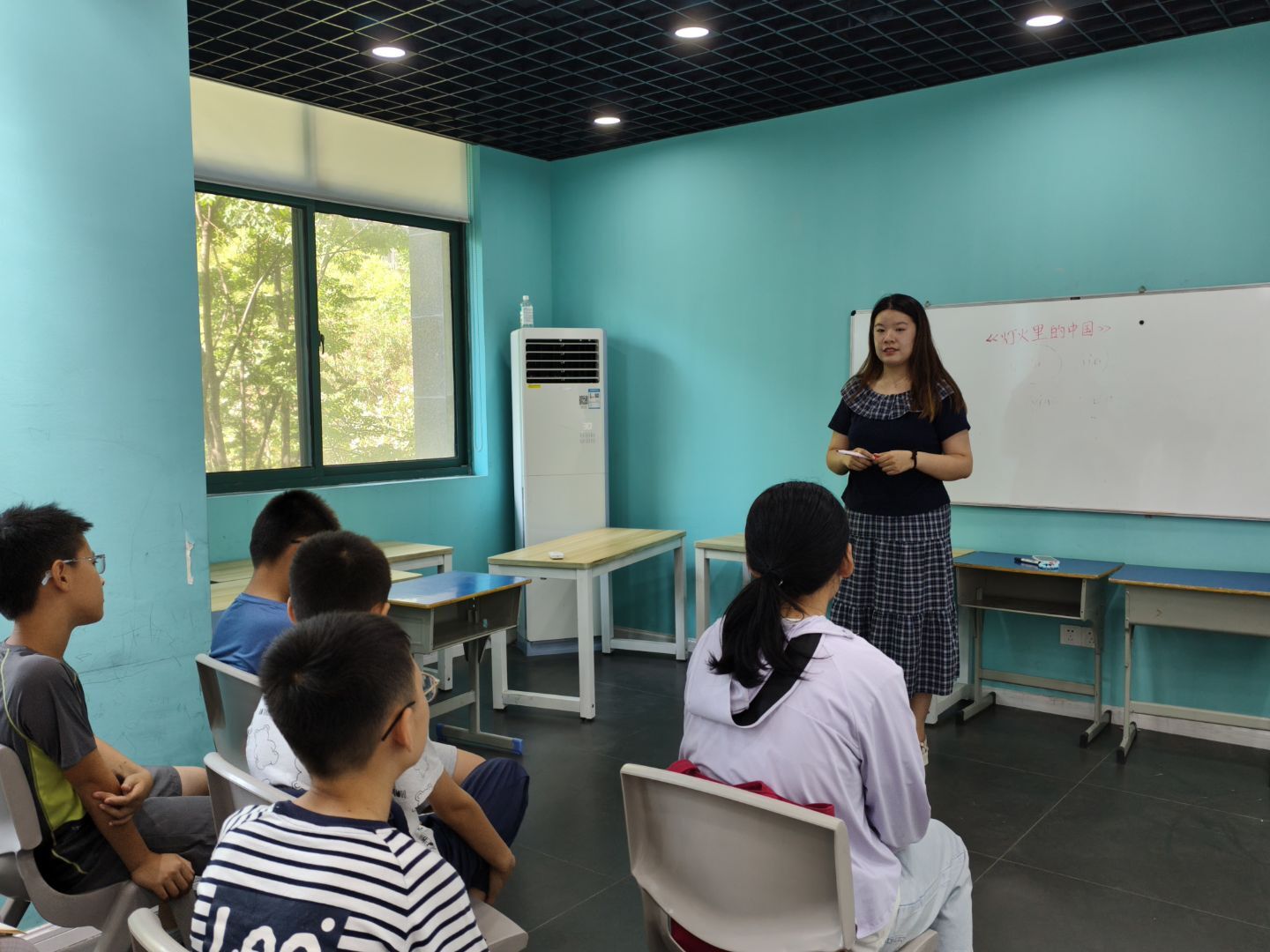 手语演绎经典 无声传递时代赞歌手语教学是本次实践的特色环节。针对青少年群体,团队选取《灯火里的中国》这首兼具时代气息与红色意蕴的歌曲,将建党精神核心内涵融入手语动作设计。教学中,成员江星月从“灯火”“中国”等单个词语的手势拆解,到整段旋律的连贯动作串联,耐心指导每一个细节;再通过个别纠正、分组展示等方式,充分调动孩子们的学习兴趣。“比如‘灯火里’,我们用双手在胸前交替划圆,象征万家灯火的温暖;‘青春婀娜’则以双手轻摆如流水的动作,展现新时代的蓬勃活力。”江星月介绍,这种可视化的表达让抽象的精神内涵变得生动具体,孩子们虽动作略显生涩,却眼神专注,在无声的旋律中传递着对祖国的热爱与对时代的赞美。