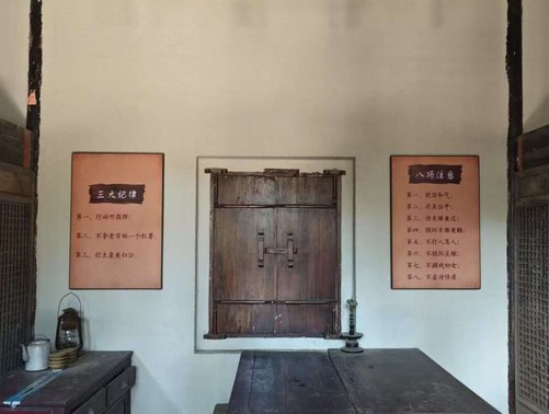 图为豫东南道委、道区苏维埃政府旧址中的“三大纪律,八项注意”。 梁伟鑫 供图