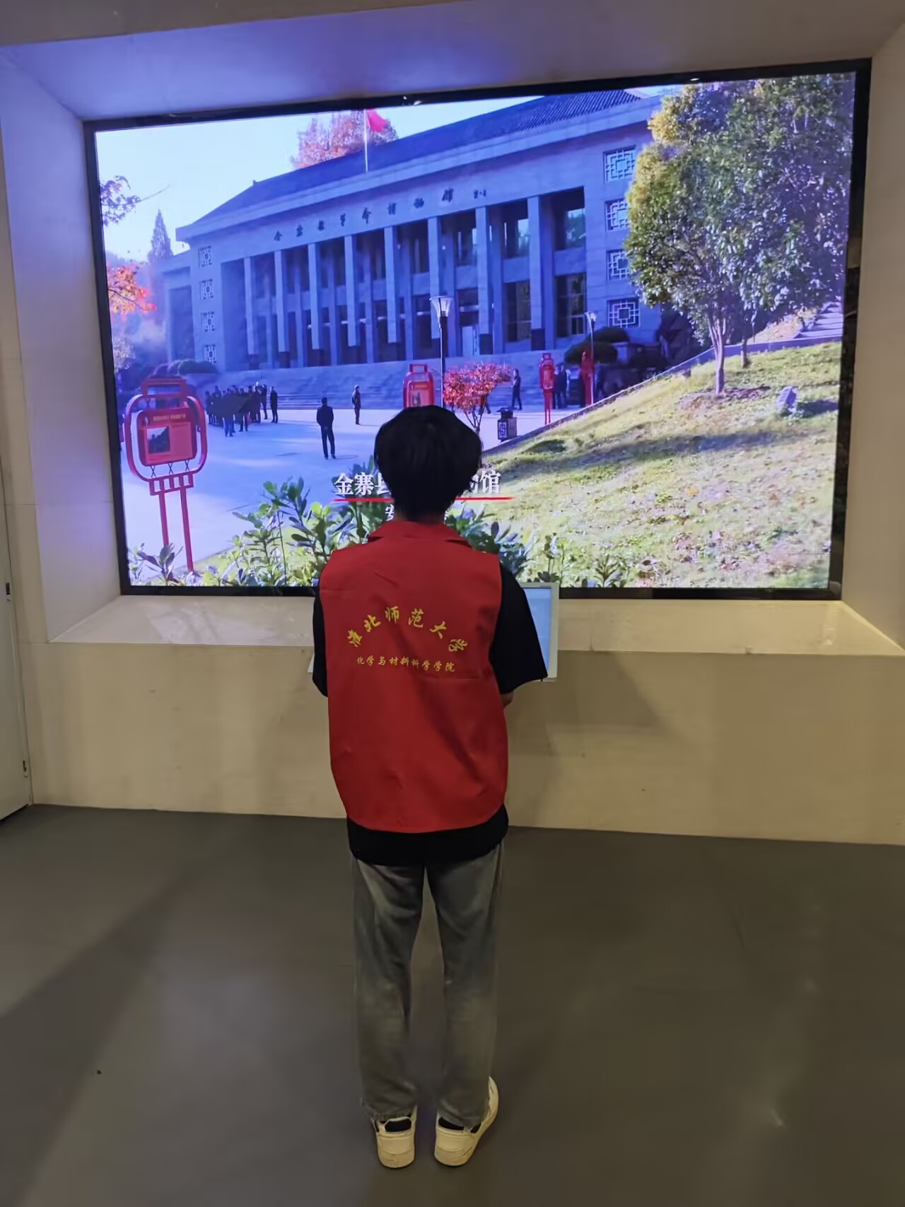 图为星火寻迹队在金寨县红军纪念馆学习视频影像。 梁伟鑫 供图