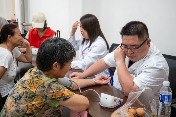 实践团联合骨科与消化内科专业医生,在留庄营村设立临时医疗服务点,为村民提供血压、血糖检测及疾病诊疗服务。团队成员分工协作,有序引导村民登记、检查,并协助医生建立健康档案。针对中老年慢性病高发问题,团队重点提供个性化健康指导,帮助村民了解疾病防治知识,获得村民一致好评。