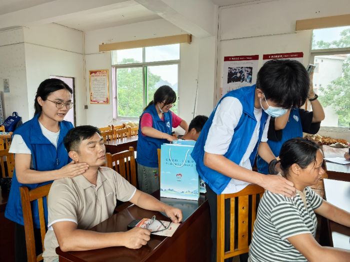 推拿按摩区更是热闹,队员们针对村民常犯的颈肩腰腿痛,用专业手法推拿穴位。被按得直点头的大叔说:“比贴膏药管用!”队员们边按边教简易拉伸动作,让大家干农活间隙能自己放松。村民们捧着健康手册,感受着贴心服务,脸上满是笑容,真切体会到健康保障带来的温暖与安心。