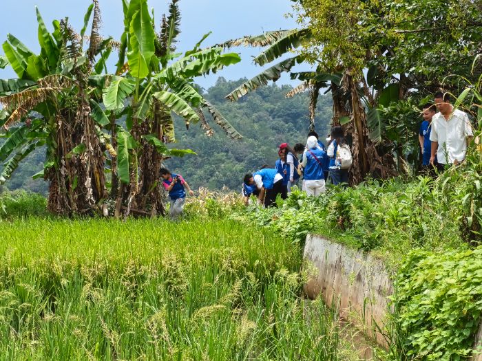 骄阳下的稻田埂上,团队成员的身影穿梭在稻渔种养区。他们俯身观察水稻长势,拨开禾苗查看水里的情况,指尖拈起土壤细嗅泥土气息。脚下的泥土沾了裤脚,额头的汗珠浸湿衣衫,但每个人眼中都透着专注——从实验室里的理论模型,到田埂间的真实生态,这场实地考察让稻渔共作的优化方向愈发清晰,也让专业知识在与土地的对话中,生长出解决问题的力量。